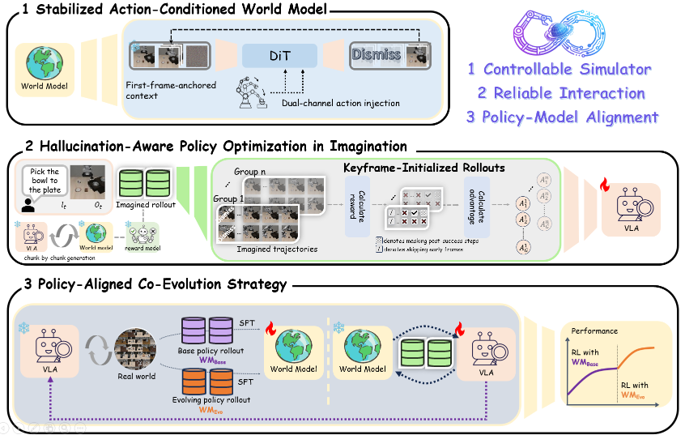 state-action denoising policy network ( d ) that refines this state prediction via denoising and